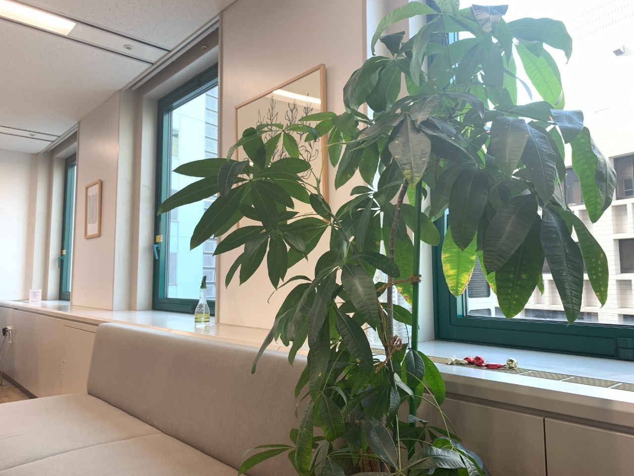 オフィスの窓際で今日も元気に成長しています。 環境にやさしい職場づくりに取り組んでいます。